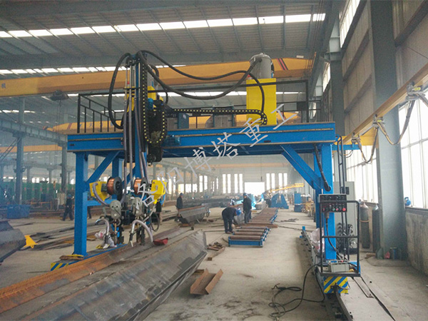 本機(jī)由龍門架、焊臂、焊槍機(jī)械跟蹤裝置、焊劑回收處理系統(tǒng)、電器控制系統(tǒng)及埋弧焊機(jī)等組成。